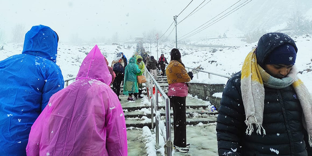 Similarly, Rabin Subedi, an employee of the Muktinath Development Committee, said that it has snowed in the Muktinath area, adding continuous snowfall from early morning has caused problems for devotees visiting the temple.
